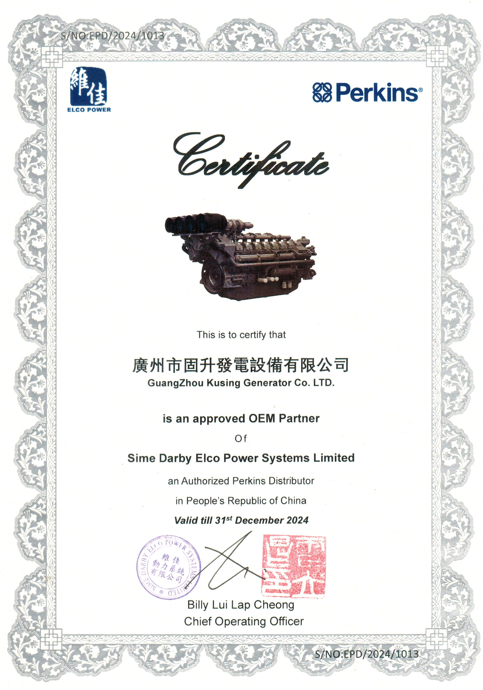 发证机构:帕金斯中国总代理