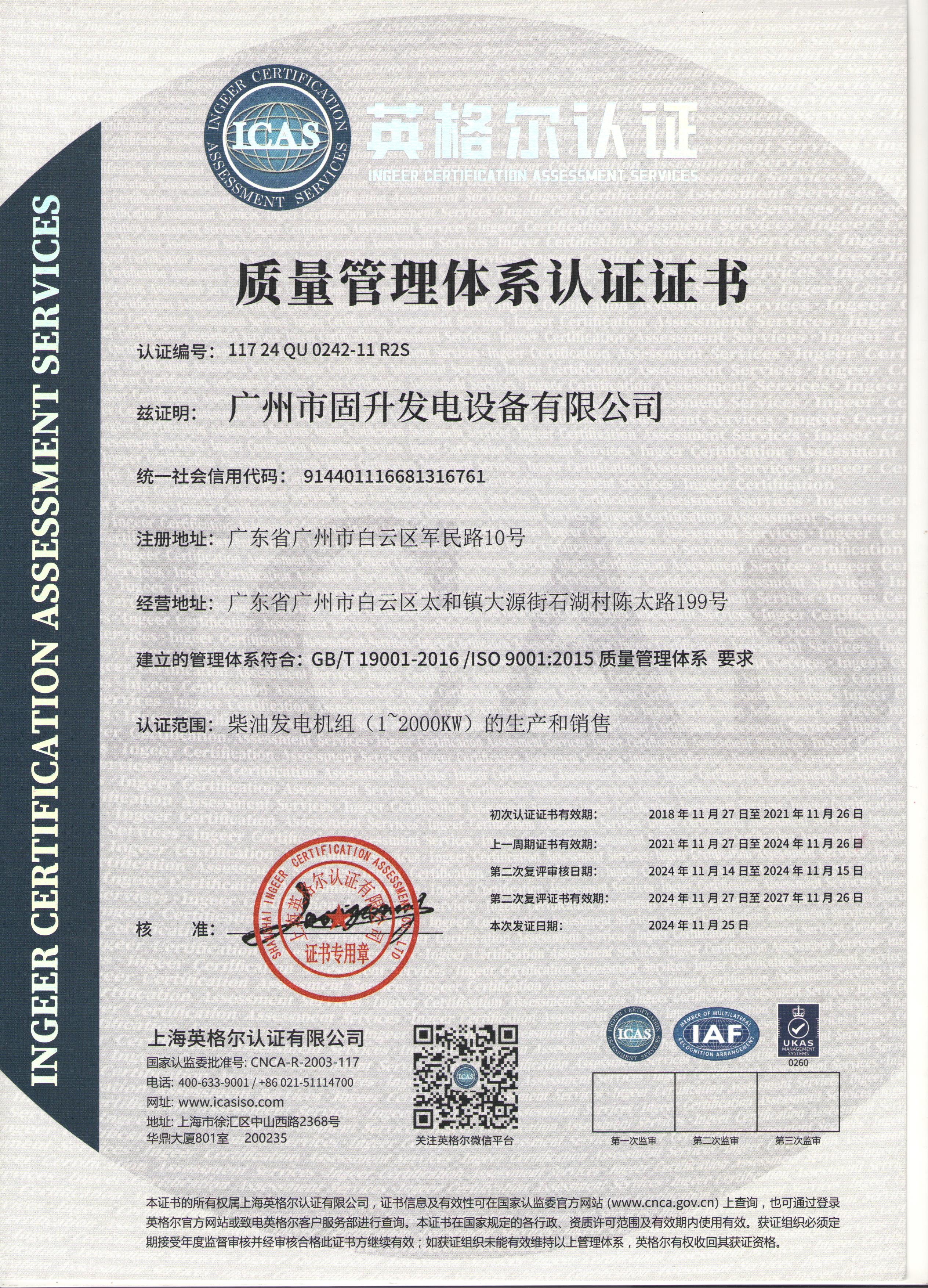 证书类型:ISO9001证书