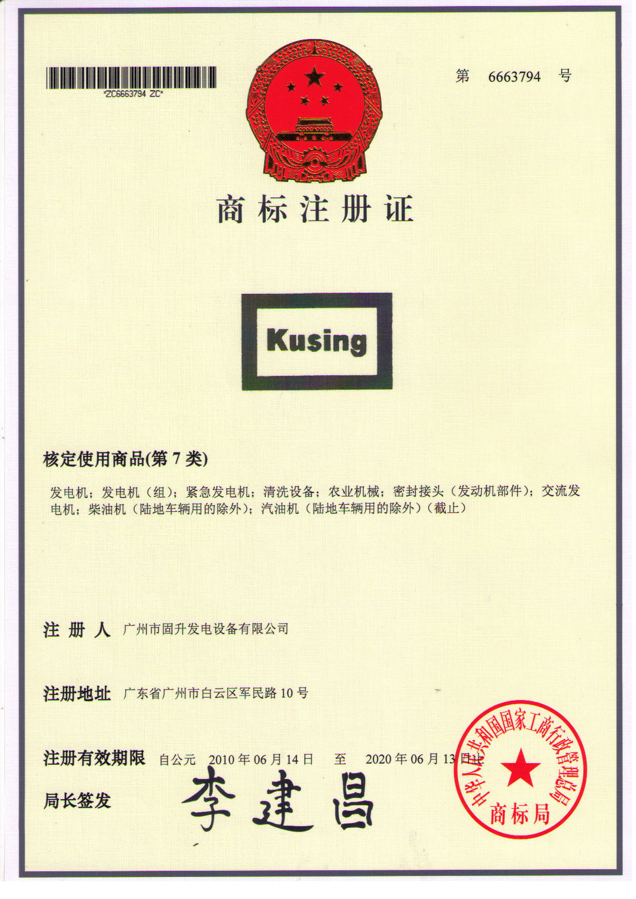 发证机构:国家工商行政管理总局
